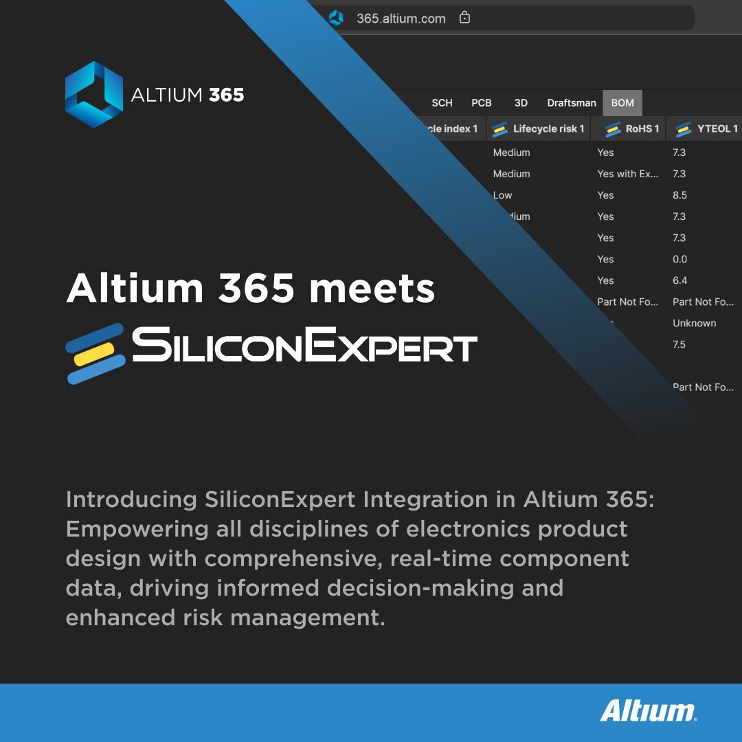 The SiliconExpert integration will be available to Altium 365 users later this month. For more information, visit https://www.altium.com/altium-365/supply-chain/siliconexpert.