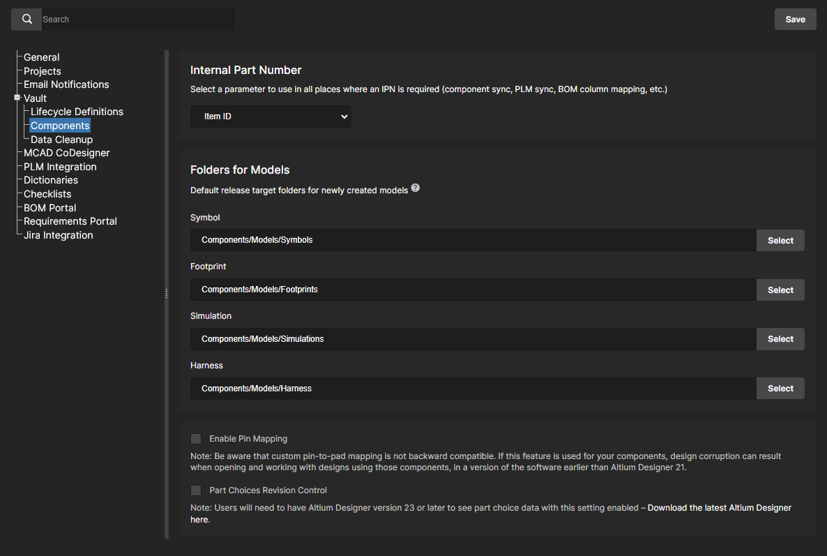This page enables you to define a Part Source – facilitating centralized supply chain management, with designers across the entire organization using the same approved list of Suppliers, with which to source supply chain intelligence for parts used in their designs.