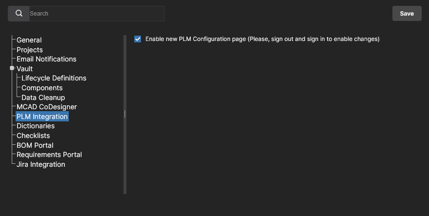 Admin – PLM Integration