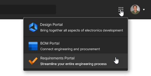 Use the Requirements Portal option from the nine-dots menu (