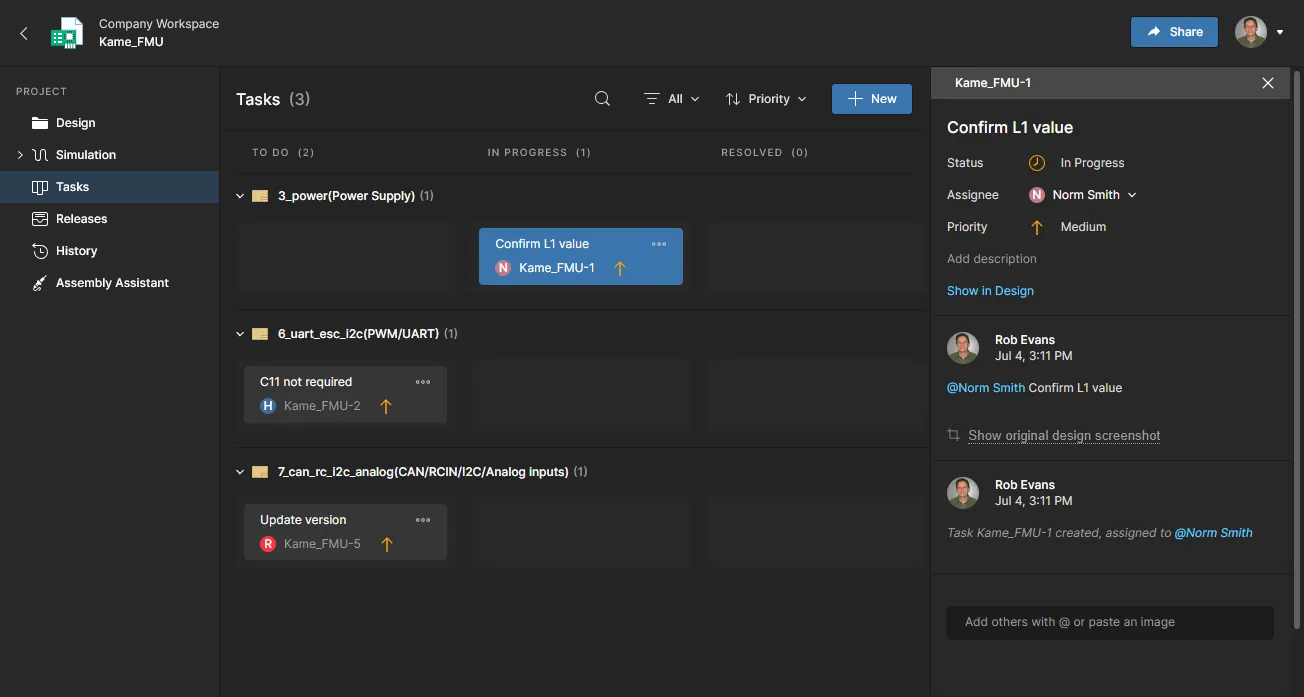 Once a Jira Issue to Workspace Task relationship is established, its Comments and status settings (priority, progress, assignee) are synchronized in real time, which provides enhanced and interactive project management insight into Altium design projects in the Jira space. Jira integration is configured by mapping Workspace projects to a specified Jira Project.
