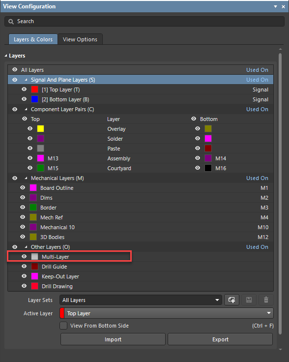 Make sure that the Multilayer layer is enabled and is the active Layer in the layer bar at the bottom. You can confirm that it is enabled by: Select the Panel tab (in the bottom right) » View Configurations. From here, scroll down to Other Layers and there should be an eye icon next to Multilayer, make sure that it is not crossed out