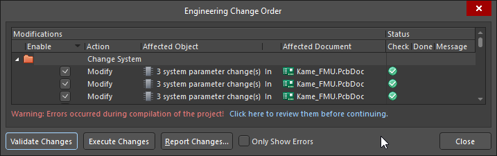 Execute Design » Import Changes From [Project Name] to see what changes would be made in the ECO and that all is intact as desired.