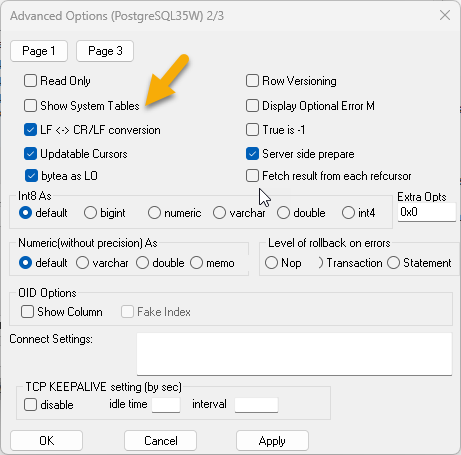 The changes should result in system tables no longer being displayed in your Database Library. For further configuration details, refer to: PostgreSQL ODBC Configuration Documentation.