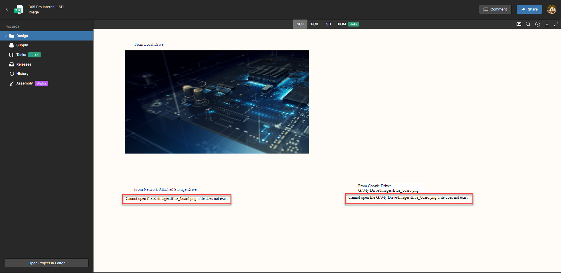 When graphics are used in schematic documents, there are requirements that must be met when rendering them in Altium 365’s web browser interface as follows: