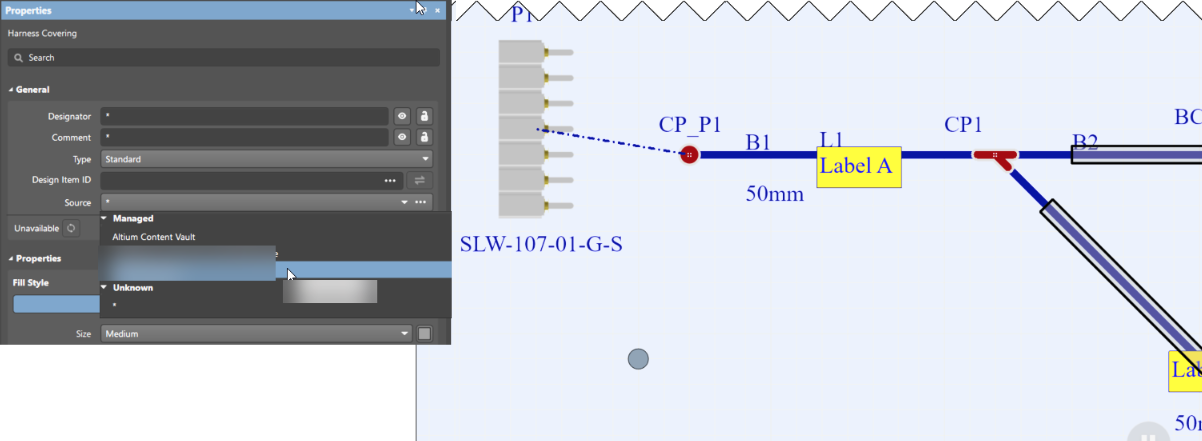 - In your A365 workspace, create a managed component for the harness covering. This component does not require a symbol or footprint.
