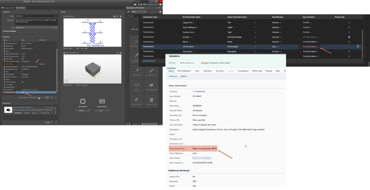 - Set the sync direction to To PLM & Altium.