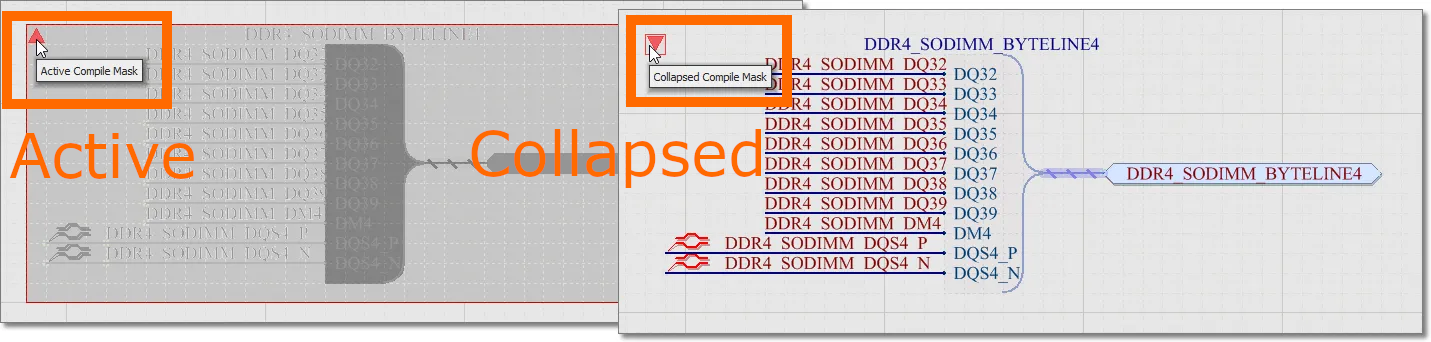 The schematic compile mask directive can be used to hide an area of the design from the compiler. This is often used to prevent error checking for circuitry that may not yet be complete. The schematic compile mask can therefore be used to hide components from the compiler, and prevent the compile masked components from being transferred to the PCB when updated.