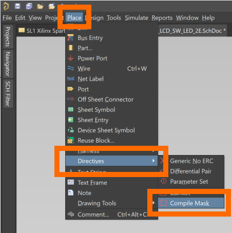1. From the schematic editor main menu, select Place >> Directives >> Compile Mask.