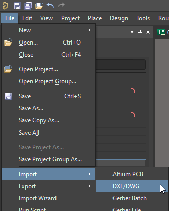 1. Import the file, which needs to be in DXF or DWG format by going to File » DXF/DWG