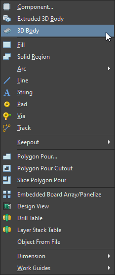 1. Place the 3D model on the PCB by: Place » 3D Body. Then select the model.