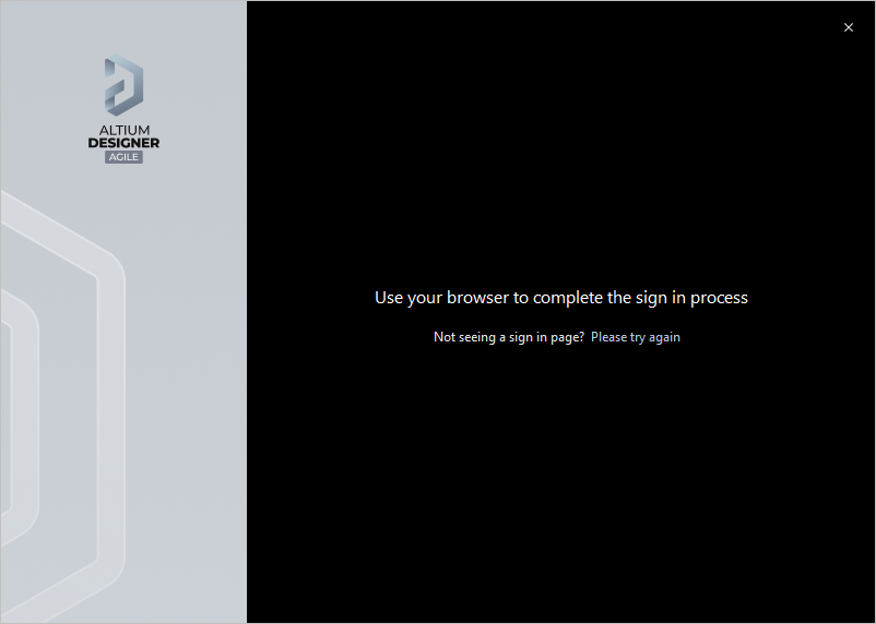 Signing in is performed using your browser. Your default browser will open with a page from which you can sign in to your Altium Account using your preferred (and accessible) method. Once signed in, the next page of the Installer will automatically open.