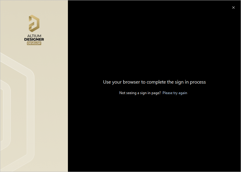 Signing in is performed using your browser. Your default browser will open with a page from which you can sign in to your Altium Account using your preferred (and accessible) method. Once signed in, the next page of the Installer will automatically open.