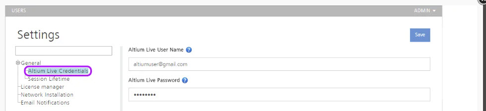 - Update the AltiumLive credentials in the server settings with valid admin account details.