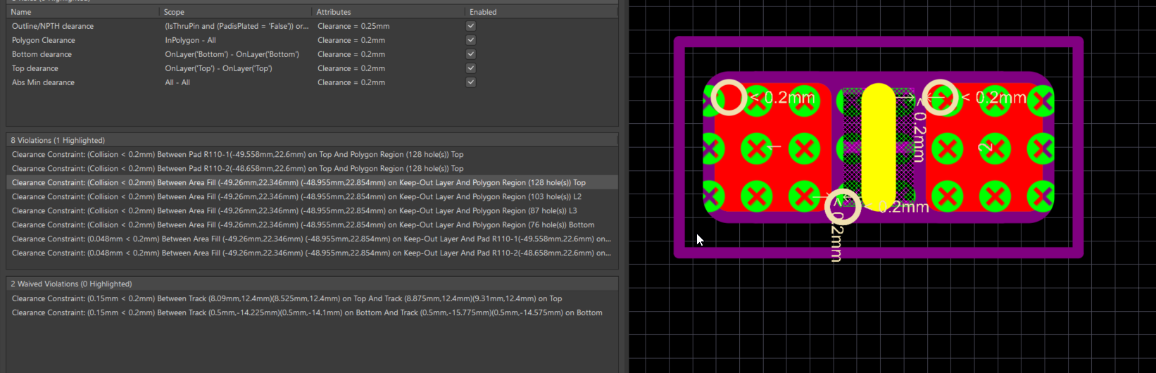 Conflict Between Keepout and Pad/Fill Regions