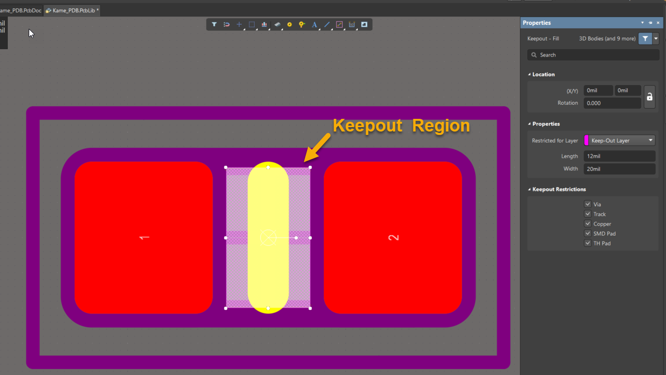 KB: Keepout region error within the same footprint primitives