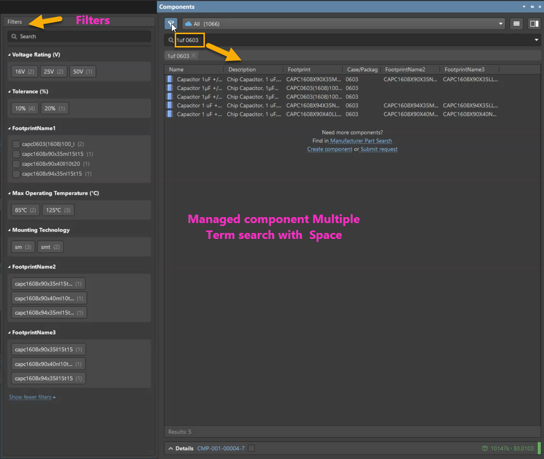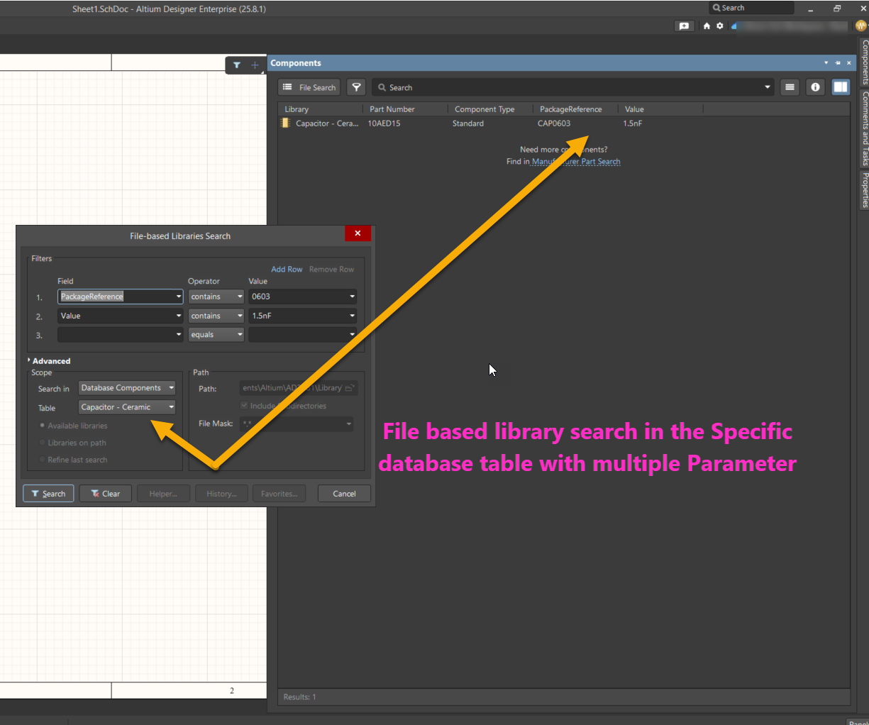 For more details, refer to Searching for Components in Database & File-based Libraries