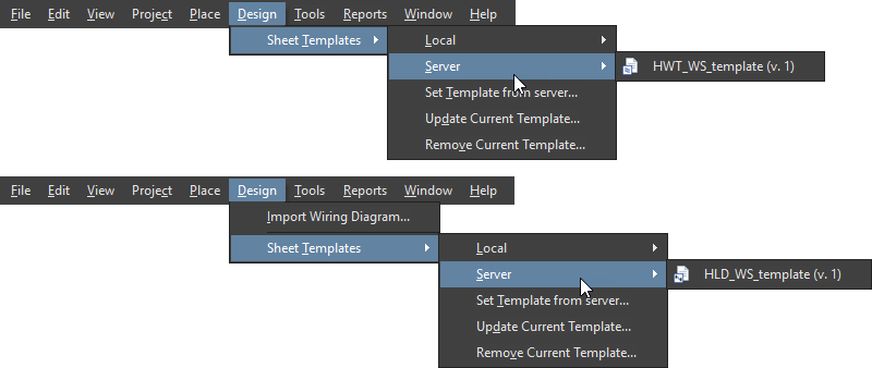 现在已完全支持在相应的编辑器主菜单Design » Sheet Templates中使用线束布线图模板(在线束布线图中)和线束布局图模板(在线束布局图中),这些模板可以是本地的,也可以是基于工作区的。