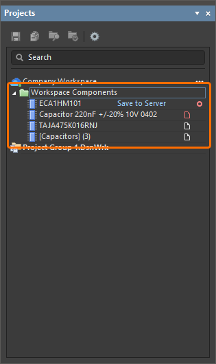 此版本添加了将多个工作区元件作为 “组” 处理的功能。打开进行编辑的工作区元件现在会显示在 Projects 面板中工作区的 Workspace Components 子文件夹下。