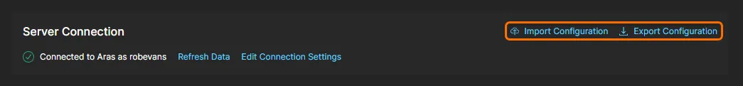 Ultimately the configuration setup you define in the PLM Integration interface is stored as system XML files, which can be saved locally from the Export Configuration command associated with the Server Connection details at the top of the configuration page.
