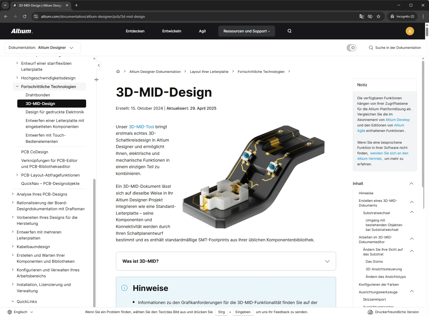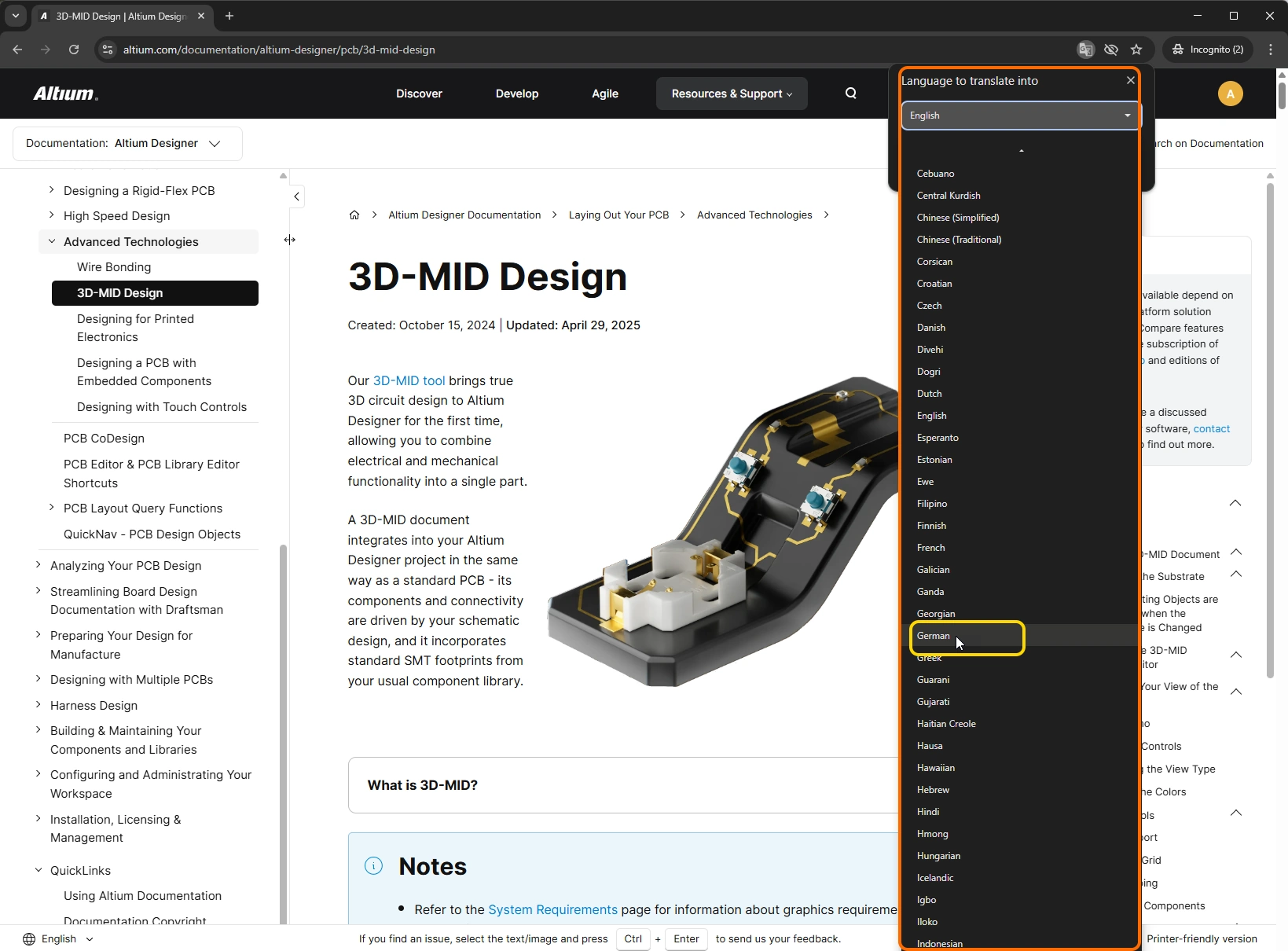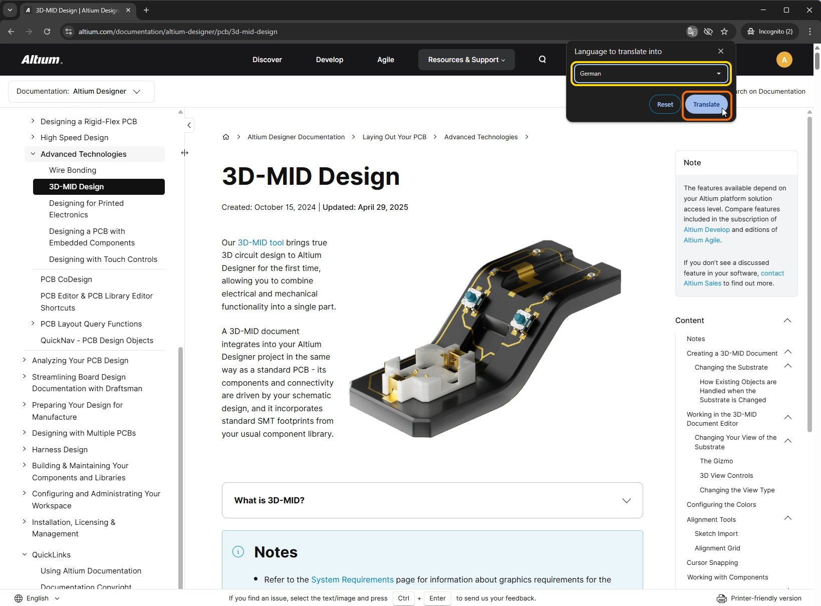 To present the content so that it works on all of these different devices, the technical documentation (as a part of the parent altium.com website) employs responsive web design. A responsive website communicates with the target device and adjusts the layout and size of the content to suit that device, screen resolution and browser size. You can get a taste of this by resizing your browser; as you shrink the width, the page elements rearrange and the fonts and images get smaller. Even on a 5-inch screen the site is functional with, for example, the navigation tree still available on your tablet or phone as a drop-down.