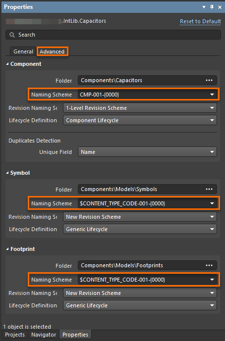 - Navigate to the Item Naming Scheme settings for components in your Workspace or Server.