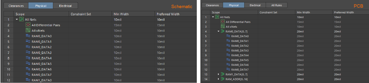 For further details about transferring constraints between Schematic and PCB please see: Transferring Constraints between Schematic and PCB