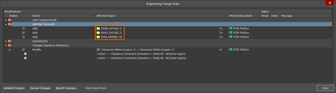 Update PCB Document - ECO Dialog