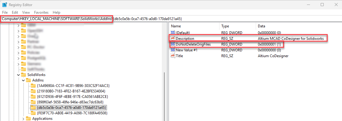 c. The same DWORD Value can be added as well to the path below as well after locating the Altium MCAD CoDesigner addin for Solidworks