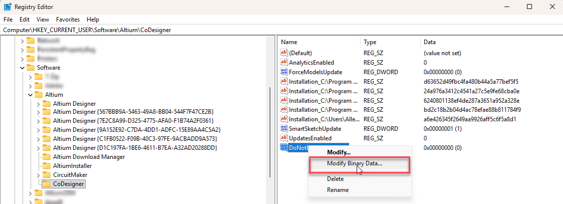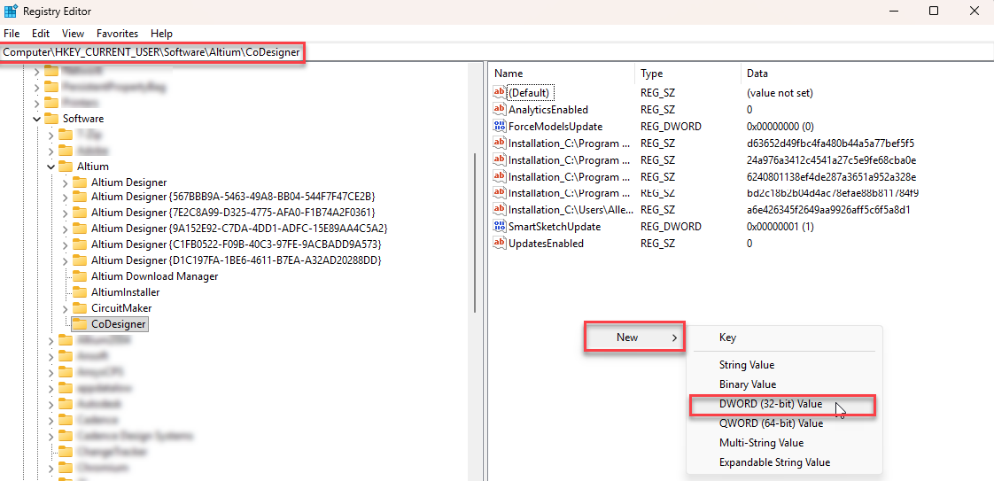 HKEY_CURRENT_USER\SOFTWARE\Altium\CoDesigner