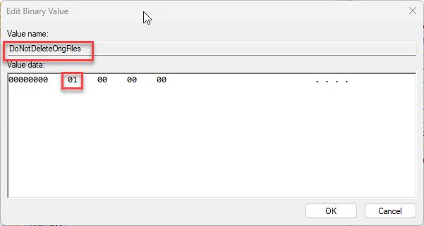 a. Name: DoNotDeleteOrigFilesb. Value: 1