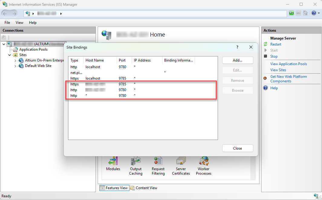 Configuration changes made by your IT department to the server hosting Altium Enterprise Server (AES) can lead to functionality issues if AES is not properly set up. This article outlines common symptoms and provides guidance on verifying and correcting key configuration files and IIS bindings.