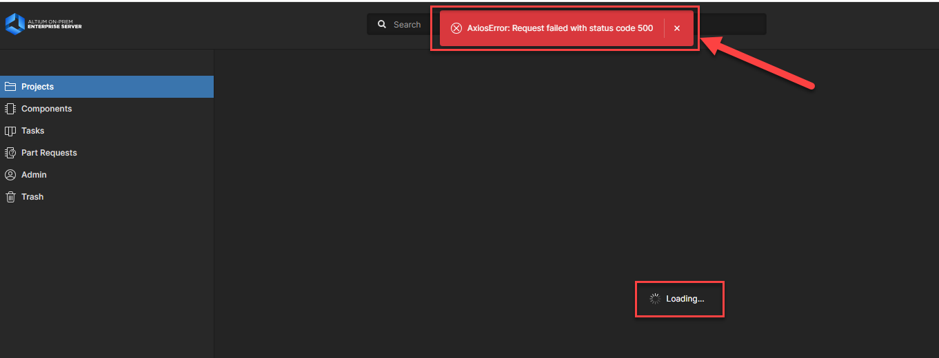 AxiosError: Request failed with status code 500 - Projects Fail to Load in the Web Viewer