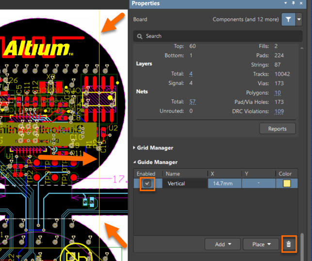 When guides are no longer needed, they can be disabled or deleted in Properties panel, under Guide Manager section.