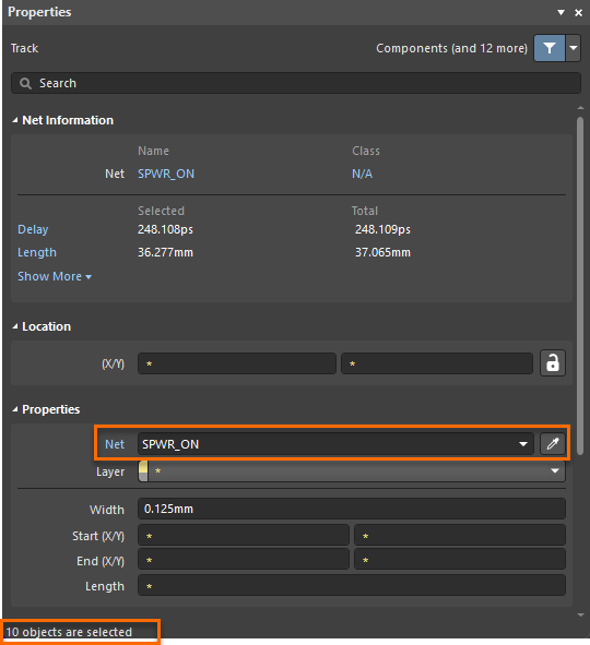 3. Press Tab again to include all objects belonging to the same net across other layers.