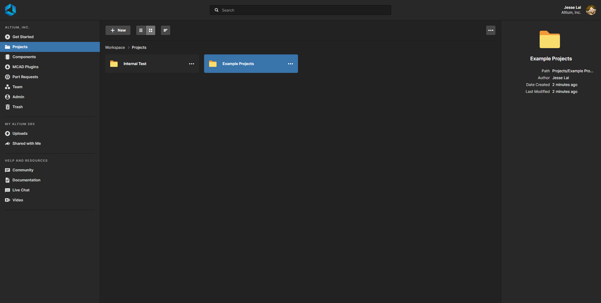 In previous versions of Altium Designer, it is possible to organize projects by grouping them into specific folders via the Explorer panel. The grouping is not limited to a specific type, and it is very flexible to the users as intended to help them, for example, recognize multiple projects as being part of one large project. Now in Altium 365, users are able to view projects by first navigating through specific folders and then access the project.