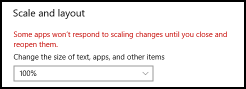 - Check the Windows Display Settings and make sure that the "Change the size and text, apps, and other items" (Scaling) is set to 100% for each monitor. If a change is required, a reboot of Windows is necessary. It may be too small to see, but if it works, you can experiment with other values to get something usable. Please note, when using multiple monitors, Altium Designer does not support different DPI Scaling values set for different monitors. For all UI elements, the DPI Scaling of the main monitor will be used.