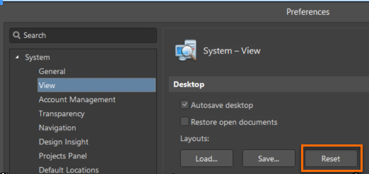 - Try going to Preferences » System » View » Desktop section » click the Reset button.