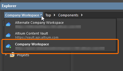 icon). Clicking the entry provides access to browse the content of that Workspace through Altium Designer's Explorer panel. Clicking the
